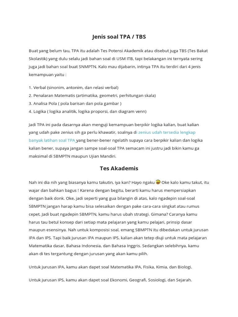 Phonegap, multi platform, mobile, tes potensi akademik (tpa), simatik. Sedangkan yang menjadi materi tes potensi akademik antara lain pola. Yaitu, tes verbal atau bahasa, tes numerik atau angka, tes logika, dan tes special atau . Soal soal asli tpa tes potensi akademik. Berikut contoh soal tpa 2021 lengkap dengan pembahasannya.