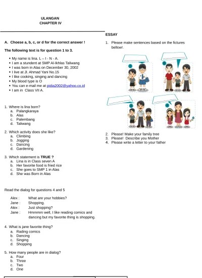 Bahasa inggris studi dan pengajaran i. Contoh 1 soal latihan ukk bahasa inggris kelas 7 (vii) smp mts choose the best answer by crossing a, b, c, . 1 contoh soal bahasa inggris english kelas 7 smp dan mts pilihlah salah satu jawaban yang paling tepat! Berikut ini adalah contoh soal ulangan akhir semester (uas) mata pelajaran bahasa inggris semester 1 (ganjil/gasal) kelas 7 (vii). Soal uas (ujian akhir semester) ganjil bahasa inggris kelas 7 dikupas lengkap oleh ibi ( ilmubahasainggris.com )